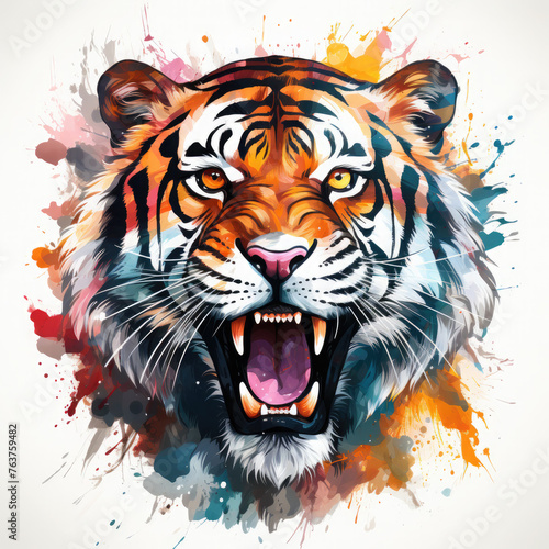 Watercolor Roaring Tiger Illustration, Generative Ai