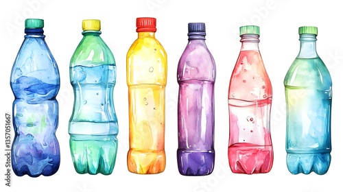 Watercolor Set of Various Plastic Bottles with Caps - Illustration for Packaging Design Project
