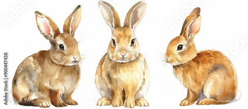 watercolor three brown rabbits clipart, set of vector illustrations in the style of on white background