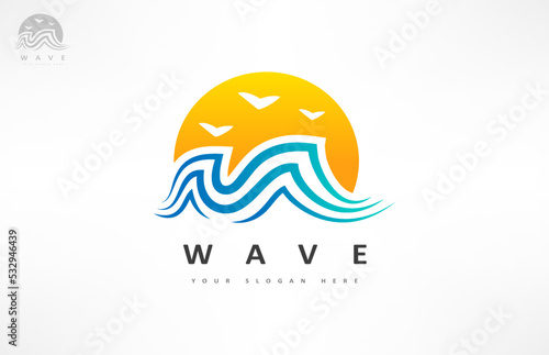 Wave and sun logo vector. Water design.