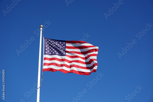 waving USA flag against blue sky