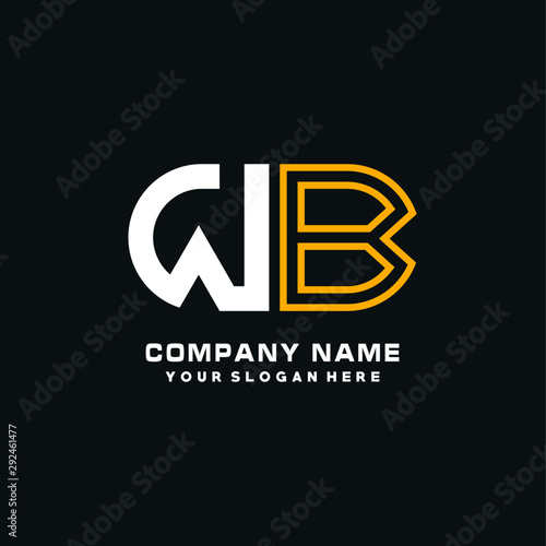 WB initial logo oval shaped letter. Monogram Logo Design Vector, color logo white blue, white yellow,black background.