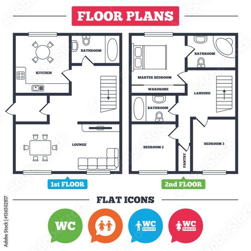 WC Toilet icons. Gents and ladies room.