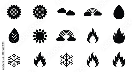 Weather and climate icons in black and white on a plain background