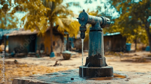 Weathered Outdoor Faucet in Rustic Rural Setting with Aged Wooden Structures
