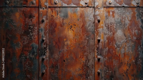 Weathered rusty metal panels with rivets
