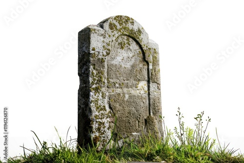 Weathered stone gravestone in grass