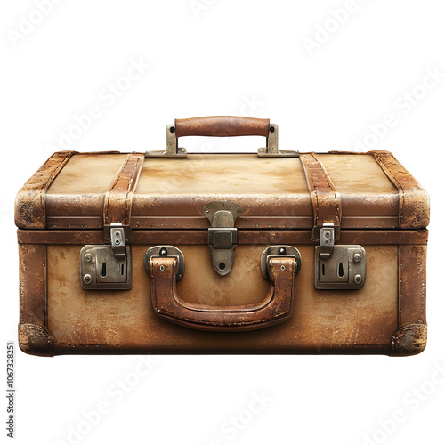 Weathered Vintage Leather Suitcase on Clean White Background