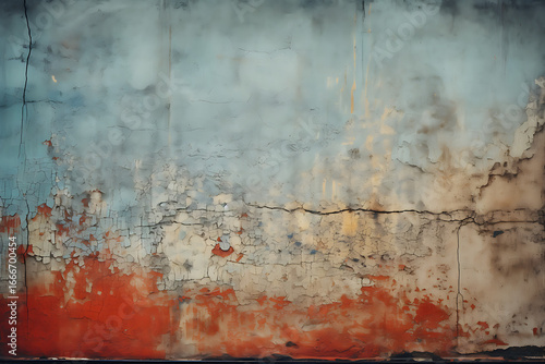 Weathered wall texture with peeling paint, creating a raw, vintage aesthetic