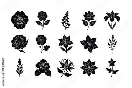WebBlack Silhouette Flower Icon Set Vector Illustration - Elegant Floral Icons