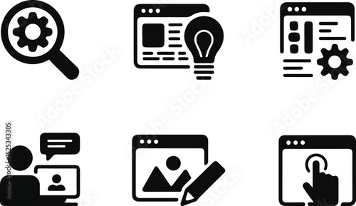 Website Interface and UX Icon Set. Web Design, Interaction, vector.