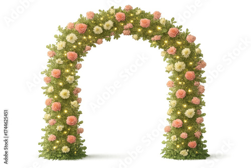 Wedding arch with flowers and twinkling lights