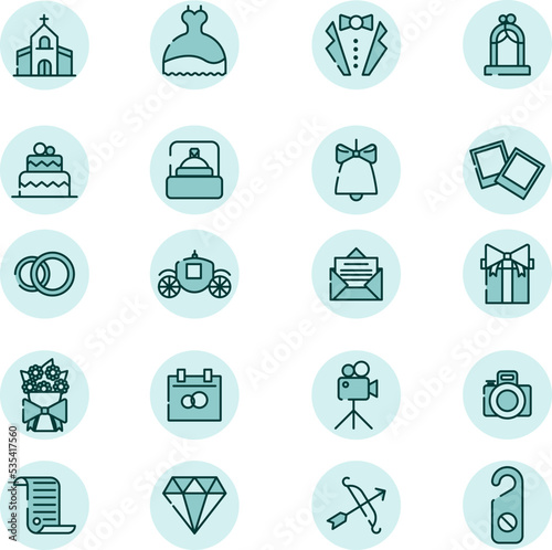Wedding icon set, illustration, vector on a white background.
