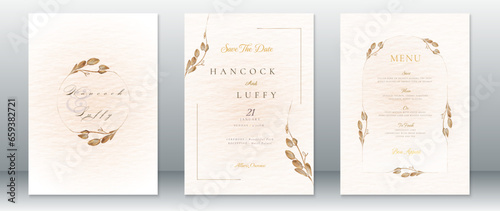 Wedding invitation card template luxury of gold minimalist nature design with watercolor background