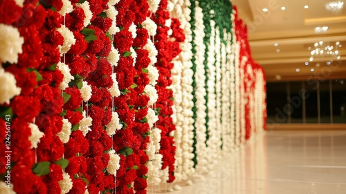 Wedding Stage Decorations with Red White and Green Flowers
