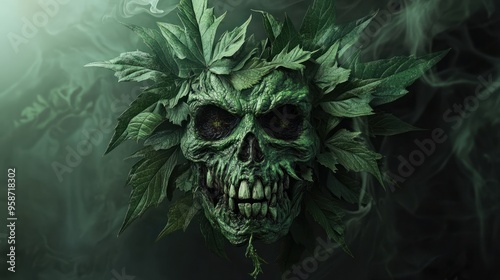 Weed leaf zombie head monster for t-shirt, stickers and label designs, poster, greeting cards advertising business company or brands, Generative AI