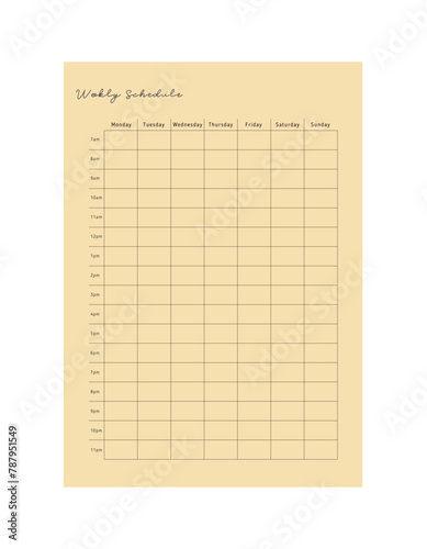weekly Schedule. Minimalist planner template set. Vector illustration.