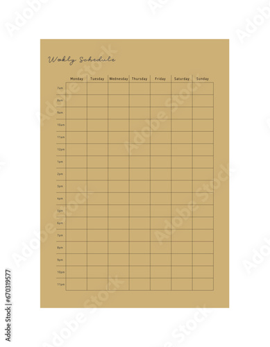 weekly schedule planner. Minimalist planner template set. Vector illustration.