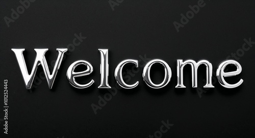 welcome silver shining shiny solid metallic lettering on plain black background