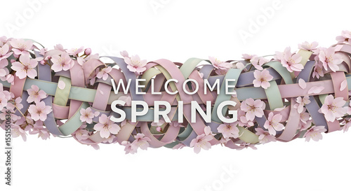 Welcome Spring floral arrangement 3d rendered isolated on white background