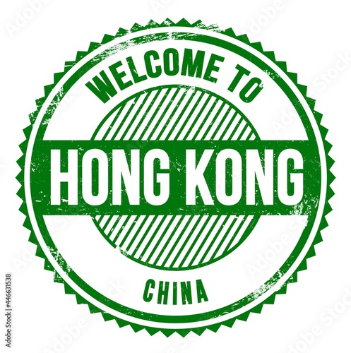 WELCOME TO HONG KONG - CHINA, words written on green stamp