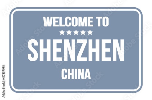 WELCOME TO SHENZHEN - CHINA, words written on gray street sign stamp