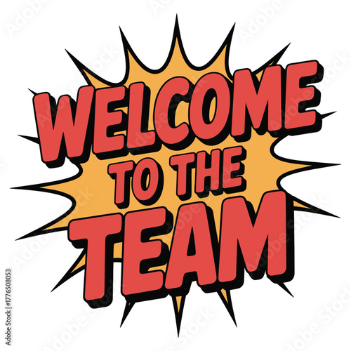 Welcome to the team text graphic in a comic book style burst.