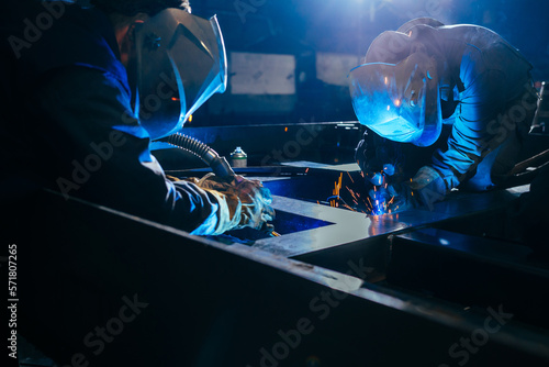 Welder in uniform working.
