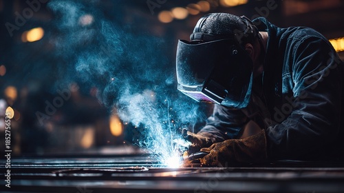 Welding Process: Capturing the intense focus and skilled technique of a welder at work, sparks fly amidst the industrial environment.