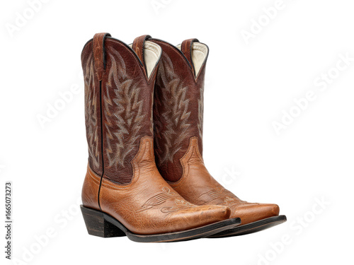 Western leather cowboy boots with intricate stitching footwear, Isolated, Png Transparent Background