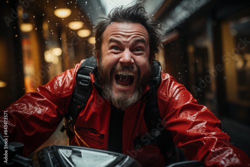 Wet street, speedy delivery.