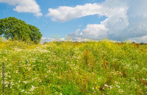 Wetland with wild flowers in summer