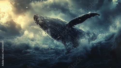 Whale soaring through the clouds