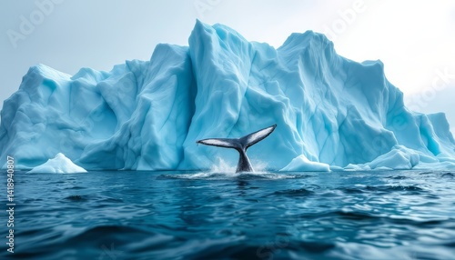 Whale's Tail Emerges: Arctic Iceberg Serenity