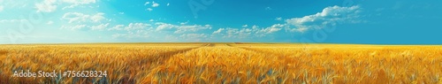 Wheat Field Painting With Blue Sky