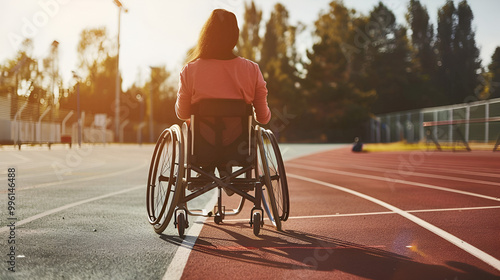 Wheelchair athletics disabled female athlete in racing chair in race athletes at a wheelchair race Generated Ai
