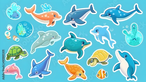 Whimsical Aquatic Creatures in Vibrant Animated Sticker Designs