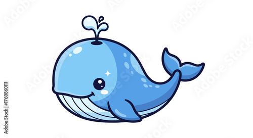 Whimsical Blue Whale Cartoon Character with Spout and Expressive Eyes for Children