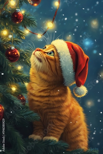 Whimsical christmas party celebrations with a salmon-colored cat new year magic festive environment cozy atmosphere