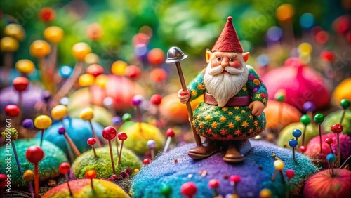 Whimsical Gnome with Axe on Vibrant Pincushion - Aerial View