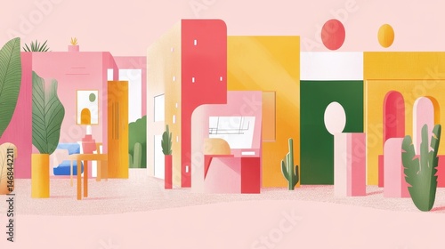Whimsical Illustrated Cityscape in Pastel Palette Dreamy Urban Scene Creative Modern Art Perfect for Social Media and Website Background