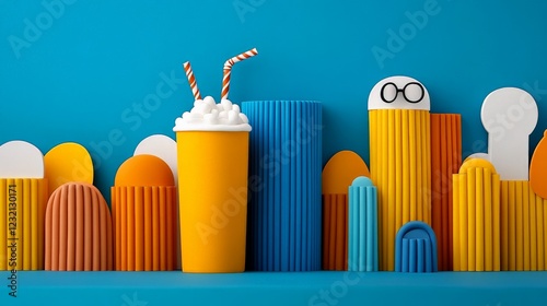 Whimsical Refreshment: A vibrant, artistic representation of a refreshing drink. This abstract illustration features a cup of drink.