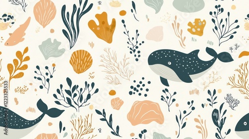 Whimsical Underwater World: Whales, Sea Plants, and Coral Reefs
