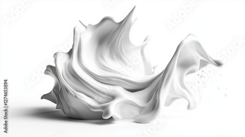 whipped white cream splashing in air isolated on white background