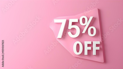 White '75% OFF' Promotional Sign on a Light Pink Background with Copy Space