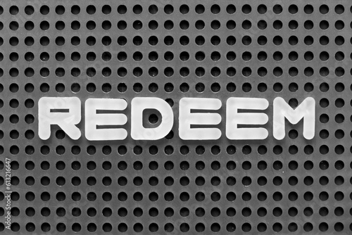 White alphabet letter in word redeem on black pegboard background