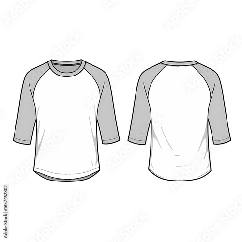 White and Gray Baseball T-Shirt with Raglan Sleeves on White Background