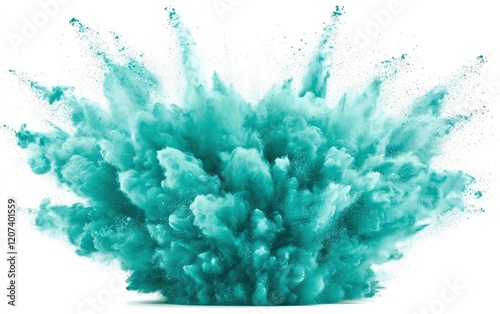 White background, turquoise powder explosion, turquoise color, high-resolution photography, insanely detailed, isolated white background, stock photo, professional color grading,