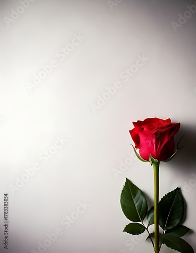 White background with a red rose