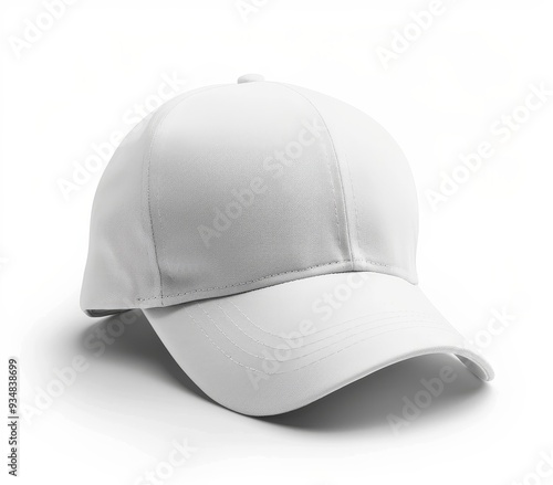 White Baseball Cap with Curved Brim on White Background